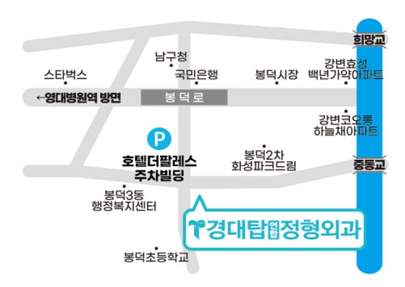 대구 남구 효성로 80 1층(외래진료) / 3층(물리치료)